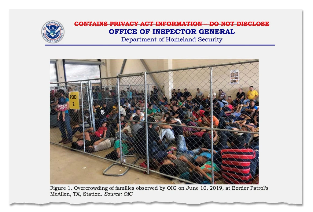 A page from the Office of Inspector General report on widespread overcrowded and squalid conditions at migrant centers along the southern border. SOURCE: “Squalid Conditions at Border Detention Centers, Government Report Finds”, The New York Times, July 2, 2019.